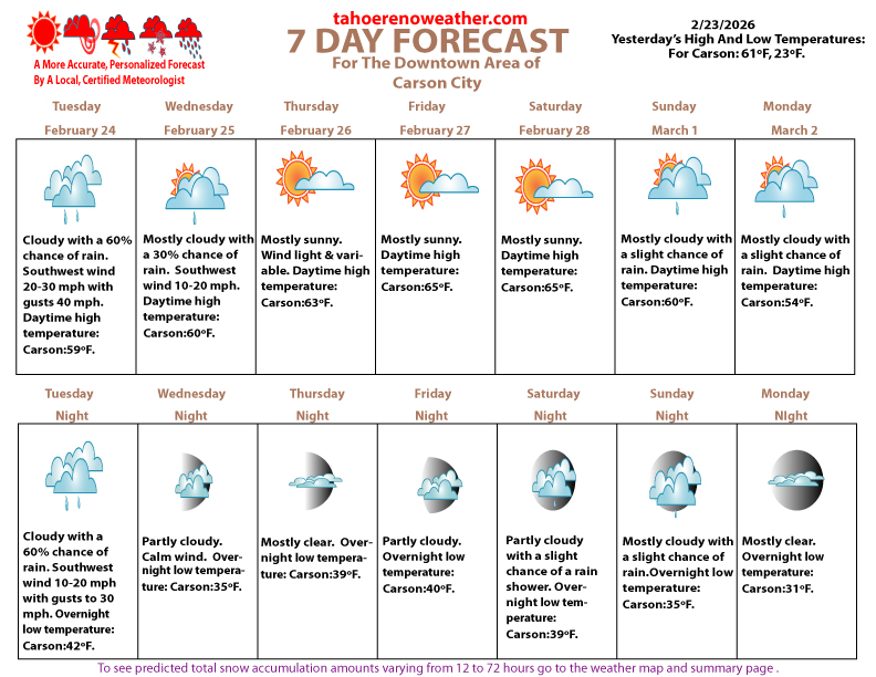 Carson City 7 Day Weather Report