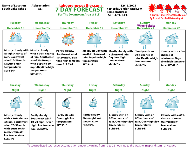 South Tahoe Weather Forecast