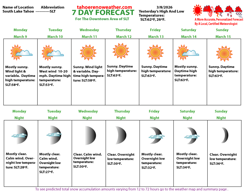 North Lake Tahoe 7 Day Weather Report